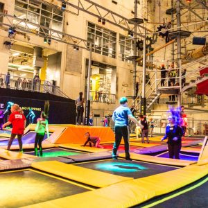 - Trampoline Park: Área con camas elásticas conectadas y canastas de baloncesto aéreo.