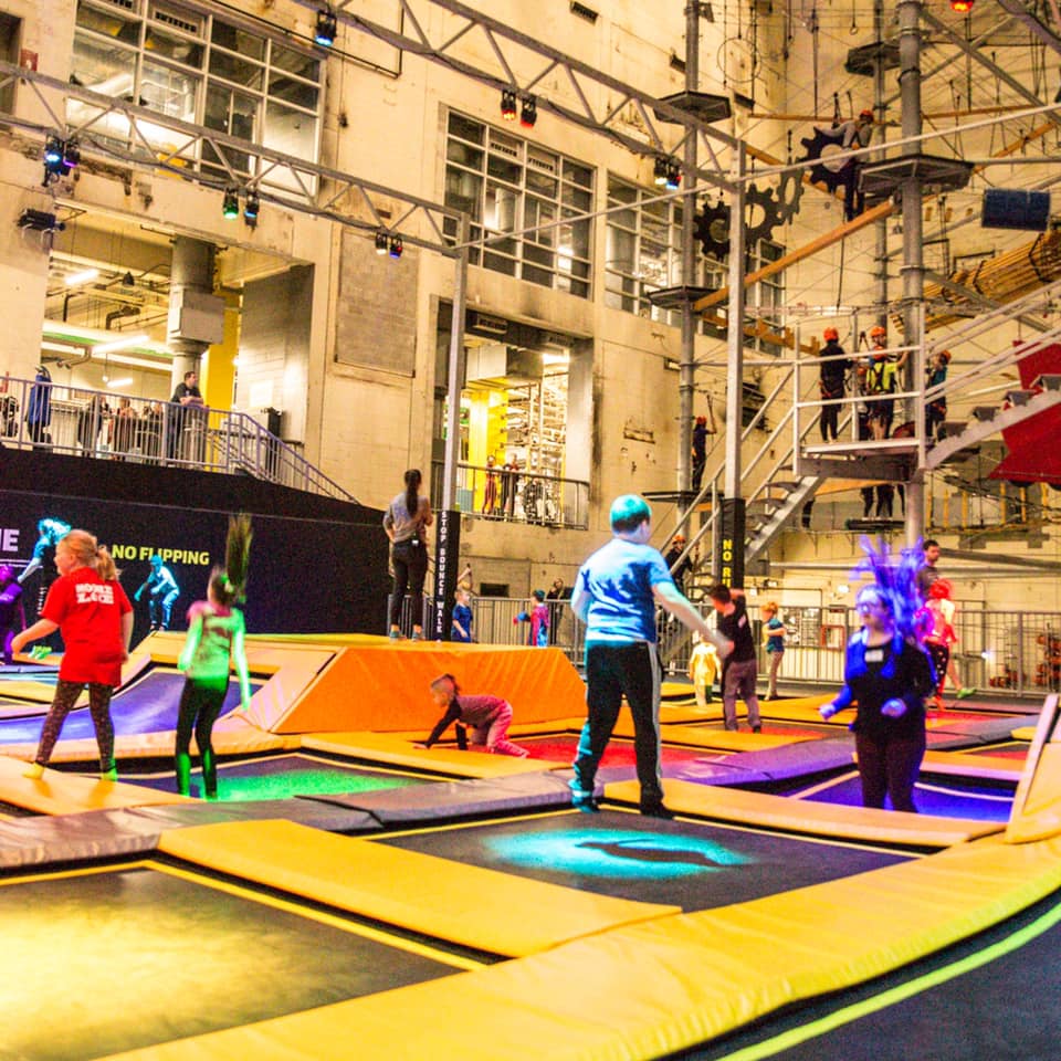 - Trampoline Park: Área con camas elásticas conectadas y canastas de baloncesto aéreo.